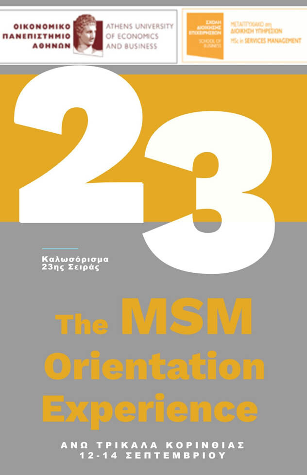 Ωραία εποχή και προορισμός για το Orientation της Νέας Σειράς του MSM, του 5ου καλύτερου Μεταπτυχιακού στη Δ. Ευρώπη (κατηγορία General Management). Έτοιμο και το πρόγραμμα του MSM ORIENTATION EXPERIENCE της Σειράς 23. MSM – Master in Services Management, Athens University of Economics & Business
