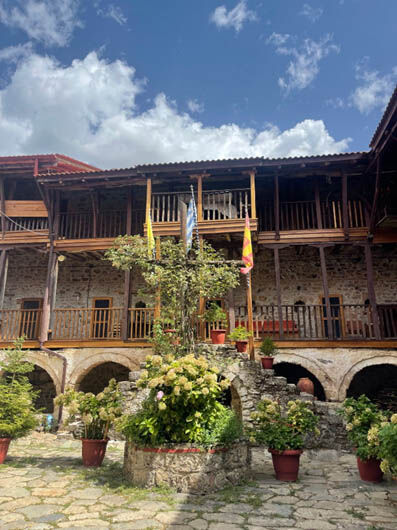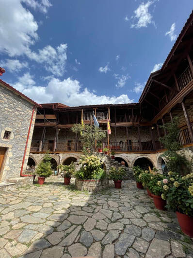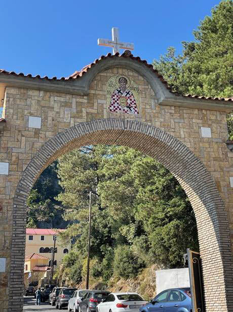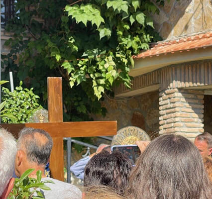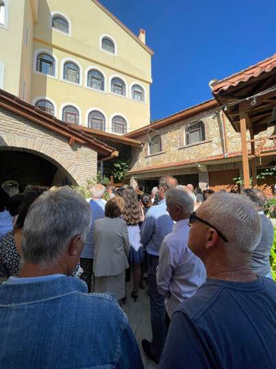 8. Η τρίτη -και τελευταία- ημέρα του Orientation, μετά το πρωινό και το check-out από τον ξενώνα, συνεχίστηκε με επίσκεψη-προσκύνημα στην Ι.Μ. Αγίου Βλασίου, ανήμερα του Σταυρού. Ήμασταν πολύ τυχεροί επειδή την εορτή του Τιμίου Σταυρού η Ι.Μ. Αγίου Βλασίου πανηγυρίζει! Παρακολουθήσαμε με κατάνυξη την (υπαίθρια) λειτουργία στην οποία χοροστάτησε ο τοποτηρητής στην Ιερά Μητρόπολη Κορίνθου, Μητροπολίτης Καλαβρύτων Ιερώνυμος.