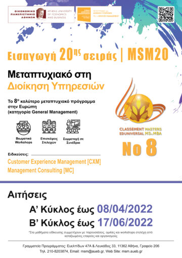 Εισαγωγή της 20ης σειράς | #MSM20 Το Μεταπτυχιακό Πρόγραμμα στη Διοίκηση Υπηρεσιών του Οικονομικού Πανεπιστημίου Αθηνών με ειδικότητες: ...