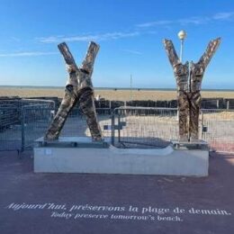 Μεγάλο μέρος της ημέρας περάσαμε στην ιστορικά φημισμένη παραλία όπου έγινε η μεγάλη Απόβαση στη Νορμανδία των Συμμαχικών Δυνάμεων, με την κωδική ονομασία “Επιχείρηση Ποσειδών“, την επική «D-Day» (6η Ιουνίου 1944). Φωτογραφηθήκαμε σ’ αυτήν, καθώς και μπροστά από τα δεκάδες καμαρίνια των ηθοποιών που πρωταγωνίστησαν στις πολλές γαλλικές και διεθνείς ταινίες που γυρίστηκαν στη διάσημη παραλία.